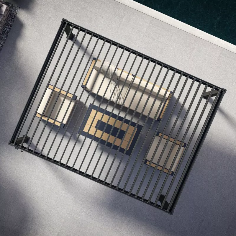 Nella tendenza al costante miglioramento dei moderni stili di vita all'aria aperta, una pergola con tetto a persiana regolabile che combina ombreggiatura, ventilazione, resistenza alla pioggia, resistenza agli agenti atmosferici ed estetica moderna è diventata la configurazione principale di cortili domestici, spazi commerciali all'aperto, aree piscina, terrazze di hotel e aree salotto all'aperto nei caffè.