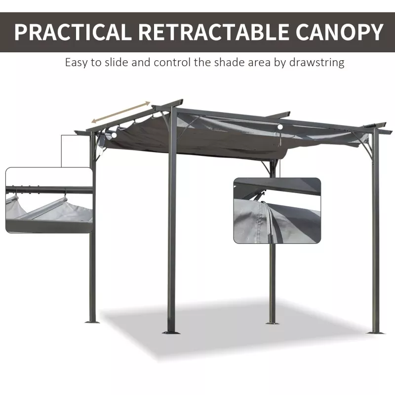 Se stai cercando un ombrellone da esterno moderno e minimalista che si adatti a vari stili di casa, la pergola con parasole regolabile di Vionta, produttore leader cinese di prodotti in metallo, è la scelta perfetta. Il suo telaio in acciaio resistente alla ruggine supporta un esclusivo baldacchino resistente alle intemperie, sapientemente progettato con fori di drenaggio per prevenire l'accumulo di acqua piovana in condizioni meteorologiche avverse. Puoi anche utilizzare i ganci inclusi per appendere le luci a LED, creando un'atmosfera sociale calda e invitante e aggiungendo al tempo stesso un'illuminazione pratica e un tocco di stile alla pergola.