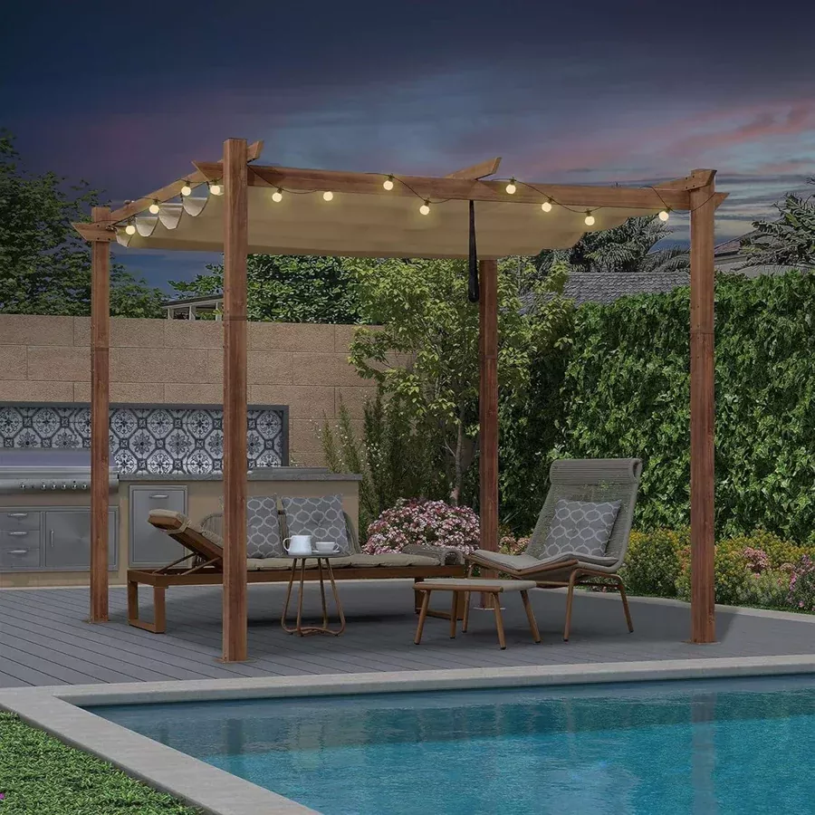 【Design Protettivo】La tettoia ombreggiata della pergola blocca efficacemente il 95% dei raggi UV e della pioggia, proteggendo la pergola quando è chiusa.