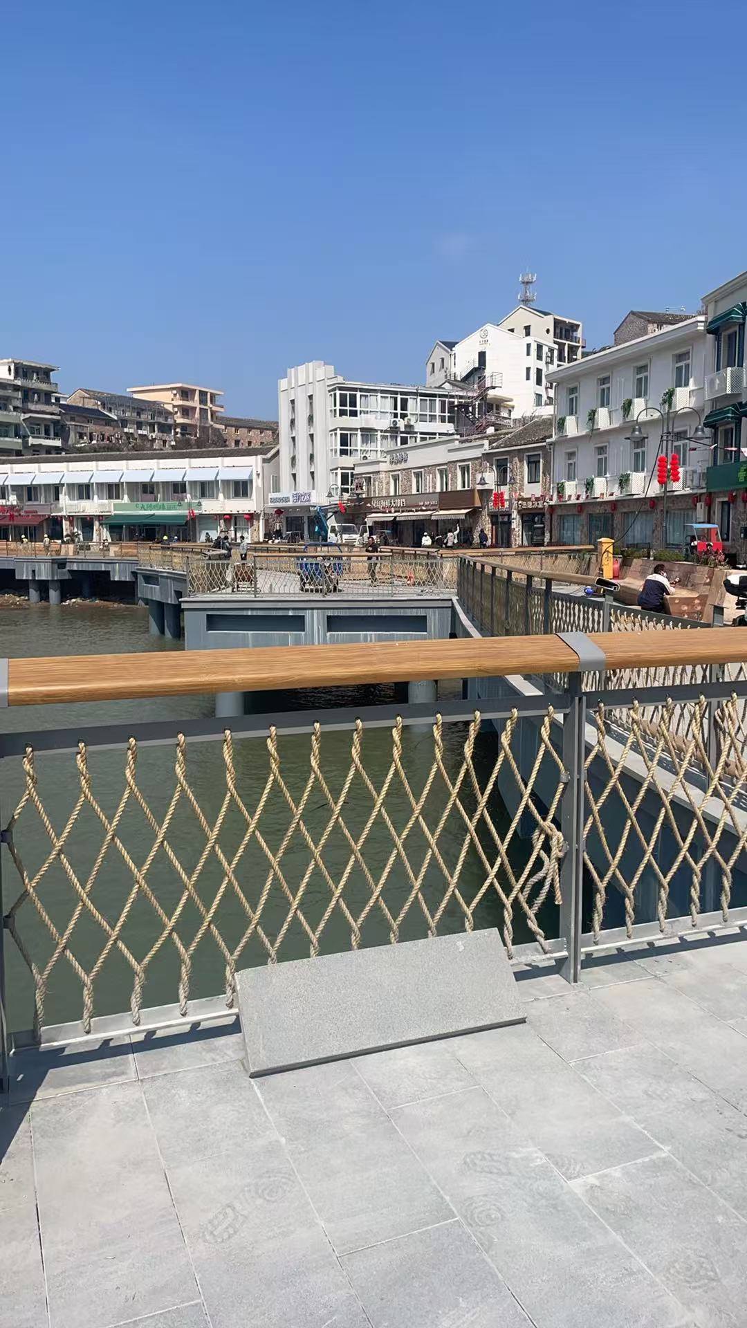 La sezione centrale è interconnessa con corde di canapa naturale, che non solo forniscono funzioni protettive di base ma migliorano anche significativamente la gerarchia visiva complessiva, rendendo il guardrail più armonioso con il paesaggio naturale dell'isola e creando un ambiente costiero rilassato e naturale.
