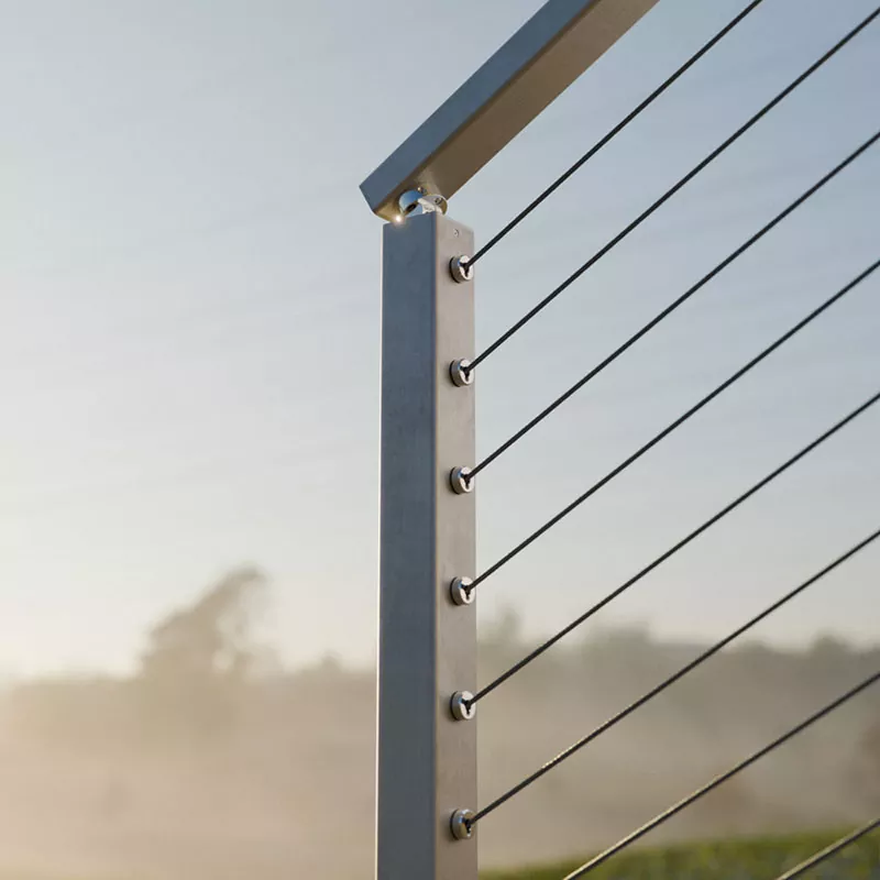 La ringhiera con cavi in ​​acciaio inossidabile, in poche parole, è un sistema di ringhiera che utilizza cavi in ​​acciaio inossidabile invece delle tradizionali barre di ringhiera o vetro. Solitamente è costituito da montanti, un corrimano superiore e diversi cavi orizzontali. Il design complessivo è minimalista, visivamente trasparente e non ostacola la vista.